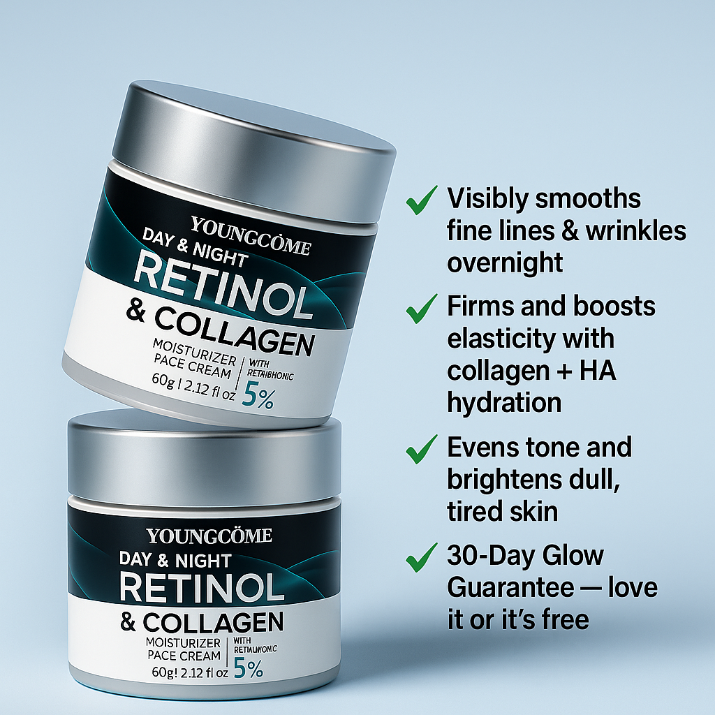 This day-to-night moisturizer pairs retinol with collagen support and 5% hyaluronic acid to smooth texture, soften fine lines, and visibly firm while delivering deep, lasting hydration. It strengthens the moisture barrier to reduce dryness and tightness, brightens dullness for a fresher, more even tone, and layers clean under makeup with a non-greasy finish. Suitable for most skin types—start slow and always use SPF in the morning.
